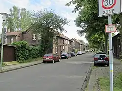 Arbeiter- und Beamtenhäuser waren streng getrennt, in der Schlägelstraße wurden zunächst acht Arbeiterhäuser errichtet, in der querverlaufenden und leicht erhöhten Ückendorfer Straße vier Beamtenhäuser. Hintergrund war die gewollte Kontrolle der Ordnung auch nach Ende der Arbeitszeit[1]: