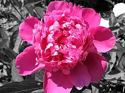 Schwarz-Weiß-Bild mit schwarz-weißen Farbmustern (chroma dots) -