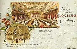 - ↑ a b c d e Archiv Erlangen: Geschichtliche Angaben zum Saalbau Kolosseum. Hrsg.: Archiv Erlangen. Erlangen 18. Januar 1952.