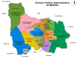 Die rurale Zone einer Gemeinde ist in Corregimientos unterteilt, d. h. der Zuständigkeitsbereich einer Gemeinde setzt sich aus ihrem Gemeindesitz und ihren ruralen Gebieten in Corregimientos zusammen.