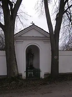 - Nischenkapelle des hl. Johannes von Nepomuk auf dem Dorfplatz, errichtet 1844