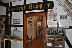 1991 wurde in der Kommandeursvilla das Wehrgeschichtliche Ausbildungszentrum der Marineschule Mürwik eingerichtet.[9][6] Der mit modernster Technik ausgestattete Kaisersaal dient heutzutage als Tagungs-, Vortrags- und Unterrichtsraum.[4][9] Der Großteil der restlichen Räume beherbergt die museale Lehrsammlung. Diese Sammlung entstand zum Teil mit Hilfe von Geld- und Sachspenden, Schenkungen und Leihgaben. Seit 1986 besteht der Freundeskreis Marineschule Mürwik, Gemeinnützige Fördervereinigung des Wehrgeschichtlichen Ausbildungszentrums e. V., der dabei hilft, die Sammlung zu erhalten und auszubauen.[10] Die Ausstellung befasst sich mit Marinegeschichte, insbesondere der deutschen Marinegeschichte. Sie beherbergt über 10.000 Exponate bestehend aus: Bildern in Form von Zeichnungen, Gemälden und Fotos sowie verschiedenen Quelltexten, Urkunden, Seekarten. Sie beherbergt zudem Flaggen, Uniformen, Medaillen, Orden und Ehrenzeichen sowie Schiffsmodelle, Schiffswappen und weitere maritime Gegenstände.[9][6][4] In der Villa kann nur ein Drittel des vorhandenen Materials ausgestellt werden. Im Hauptgebäude der Marineschule besteht deshalb zusätzlich noch eine Lagerfläche von 250 Quadratmeter.[4]