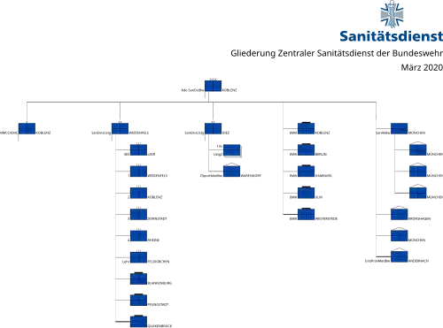 - ↑ a b c Sanitätsdienst Bundeswehr: Gliederung Kommando Sanitätsdienst der Bundeswehr. Archiviert vom (nicht mehr online verfügbar) am 4. August 2017; abgerufen am 3. August 2017.