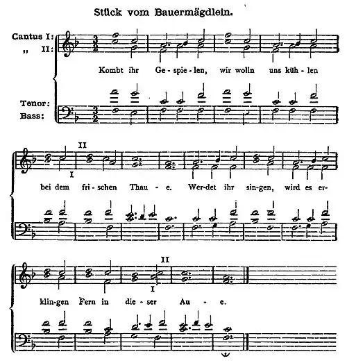 - ↑ „Kommt, ihr G’spielen“, in Musik im Leben, Bd. I, Moritz Diesterweg, 9. Auflage, 1960, S. 67