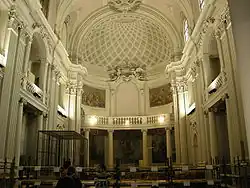 Das Oratorium rechts des Komplexes, das bereits als Gerichtssaal genutzt wurde (Deckenfresko mit der Himmelfahrt der Jungfrau Maria von Giuliano Traballesi, datiert 1775), ist das Innere entlang der Seitenwände von Logen und Exedren umgeben, die von eleganten Säulen im ionischen Stil gestützt werden. Es handelt sich um Altarräume, die an die Hauptfunktion des Raumes erinnern, in dem sich die Philippiner-Pater vor allem dem Lobgesang widmeten. Das Oratorium war also eine Art Auditorium für geistliche Musik, die nach den Regeln des Heiligen Philipp Neri eine Hauptbeschäftigung der Pater war, die aus diesem Grund auch „Oratorianer“ genannt wurden.