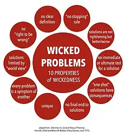 Der Designtheoretiker Horst Rittel untersuchte seit Mitte der 1960er Jahre gemeinsam mit Melvin Webber Planungs- und Gestaltungsprozesse und kam zu dem Schluss, dass soziale und gesellschaftliche Planungsprobleme in einer offenen Gesellschaft weder definitiv formuliert werden können noch eindeutig und endgültig lösbar sind. Diese „vertrackten“ oder „bösartigen Probleme“[15] erfordern nach Rittel einen transdisziplinären, iterativen Lernprozess, der – eingebettet in einen organisatorischen Rahmen – wiederholt Varietät erzeugt und reduziert. Nach Wolfgang Jonas kann Rittel damit als Vordenker des Social Transformation Design angesehen werden.[16]
