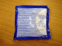 - Vliesstoffkompressen (steril oder unsteril) erfüllen den gleichen Zweck wie Mullkompressen, sind preiswerter und aufgrund der Eigenschaften des Vließmaterials anschmiegsamer, angenehmer auf der Haut und zudem deutlich einfacher zu drapieren, als diese.[2] Sie bestehen meist aus einer Mischung von ca. 2/3 Viskose und 1/3 Polyester und sind mehrfach gefaltet. Sie können, bezogen auf ihr Eigengewicht, mehr Flüssigkeit aufnehmen als Mullkompressen.