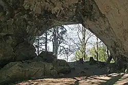 - In der 1950 aufgefundenen Höhle Koněpruské jeskyně wurden Knochen von Höhlentieren, Schädelteile und Knochen eines altsteinzeitlichen Homo sapiens sapiens sowie eine mittelalterliche Falschmünzerei mit 5000–10.000 Silbermünzen Georg von Podiebrads aus der Zeit zwischen 1469 und 1472, die aus mit Amalgamsilber versilberten Kupferblechen hergestellt worden waren. Seit 1959 ist die Höhle öffentlich zugänglich.