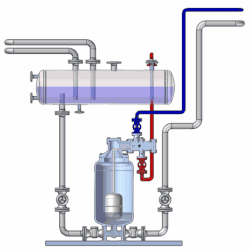 Der Druck im Kondensatheber baut sich unabhängig vom Treibdampf- bzw. Arbeitsdampfdruck auf. Das Kondensat wird verdrängt.