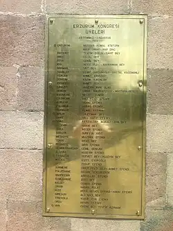 Am 23. Juli 1919 trafen sich 56 Delegierte aus den Vilâyets von Bitlis, Erzurum, Sivas, Trabzon and Van in Erzurum auf Einladung von Mustafa Kemal and Kâzım Karabekir. Die Konferenz wurde in dem Gebäude abgehalten, in dem sich einst das Sanasaryan Koleji befunden hatte, eine renommierte Schule und ein ehemaliges regionales Zentrum der armenischen Kultur und Bildung in den Jahren vor dem Völkermord an den Armeniern.[15]