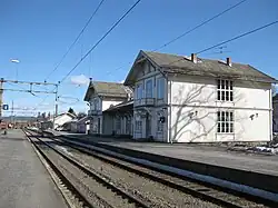 In der Stadt Kongsvinger treffen auch die beiden Eisenbahnlinien Bahnstrecke Elverum–Kongsvinger und Kongsvingerbanen aufeinander.[2] Die Kongsvingerbane führt Richtung Westen nach Lillestrøm, etwas östlich von Oslo, und in den Osten nach Charlottenberg in Schweden. Der Abschnitt von Lillestrøm bis Kongsvinger wurde 1865 eröffnet, der bis nach Schweden drei Jahre später.[16] Die auch unter dem Namen Solørbanen bekannte Bahnstrecke nach Elverum führt entlang der Glomma in den Norden. Die Strecke wird nur für den Güterverkehr genutzt.[17]