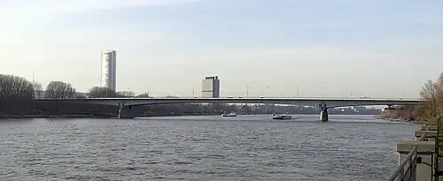 Die linksrheinische fünffeldrige Vorlandbrücke besteht aus Spannbeton. Sie hat Stützweiten von 50 m und 4 × 60 m.