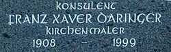 Grabstätte des Kirchenmalers Franz Xaver Daringer in Aspach mit Nennung des Konsulententitels