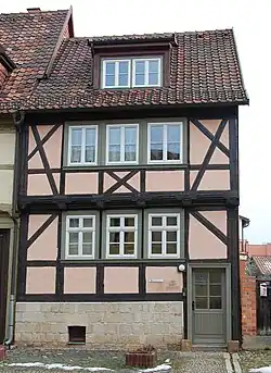Das zweigeschossige Fachwerkhaus wurde um 1680 errichtet. Das obere Stockwerk ist mit für die Bauzeit typischen Verzierungen versehen und präsentiert sich weitgehend original. So findet sich die Fachwerkfigur des Halben Manns, eine Brüstungsbohle und Pyramidenbalkenköpfe. Darüber hinaus befindet sich an der Stockschwelle eine Inschrift. Das Erdgeschoss wurde später, im Zuge einer Einbeziehung in das benachbarte Grundstück Konvent 32, umgebaut.