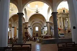 Linker Hand von der Kirche befindet sich die Capilla Real (auch: „de Naturales“[2] oder „de Indios“), die noch vor 1540 errichtet wurde[14][15] und deren Architektur vom Mudéjar-Stil beeinflusst ist.[2] Ihre Form ist ganz einmalig und erinnert im Inneren entfernt an die Mesquita von Córdoba. Der schlichte Raum besteht aus sieben Schiffen, die von einem Meer aus Säulen oder Pfeilern und Arkaden gebildet werden. Im mittleren Hauptschiff sind die Säulen aus grauem Stein, die übrigen Pfeiler sind achteckig und weiß gekalkt. Zwischen jeweils vier Rundbögen befindet sich je ein kleines Kuppelgewölbe, also insgesamt 49 kleine Kuppeln, die auch am Außenbau zu sehen sind und dem Bauwerk seinen besonderen Charakter verleihen. Das Taufbecken aus einem einzigen Stein ist mit Akanthusranken und Symbolen der Franziskaner verziert und stammt aus der Entstehungszeit,[16] der klassizistische Altar aus dem 19. Jahrhundert. An den Wänden befinden sich weitere Altäre, Seitenkapellen und Gemälde aus dem 16. bis 18. Jahrhundert.