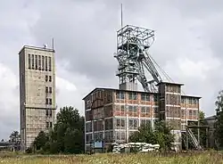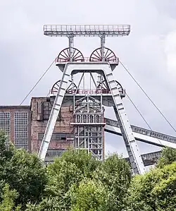 - Fördergerüst für Seilfahrt und Materialtransport über Schacht Paweł