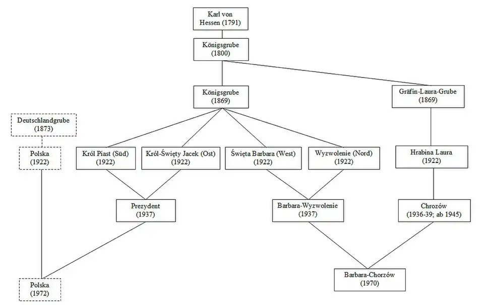 Während es in den Anfängen des Bergwerkes eine enge Verknüpfung zwischen den beiden preußischen Staatsbetrieben Königshütte und Königsgrube gab, verlief ab 1871 die Entwicklung auf getrennten Bahnen. Die Königshütte wurde privatisiert, während das Bergwerk bis 1922 in Staatsbesitz blieb.