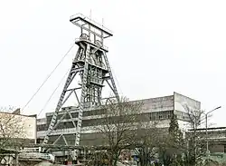 - Schacht I: Betonturm mit Skipförderung von der 795-m-Sohle