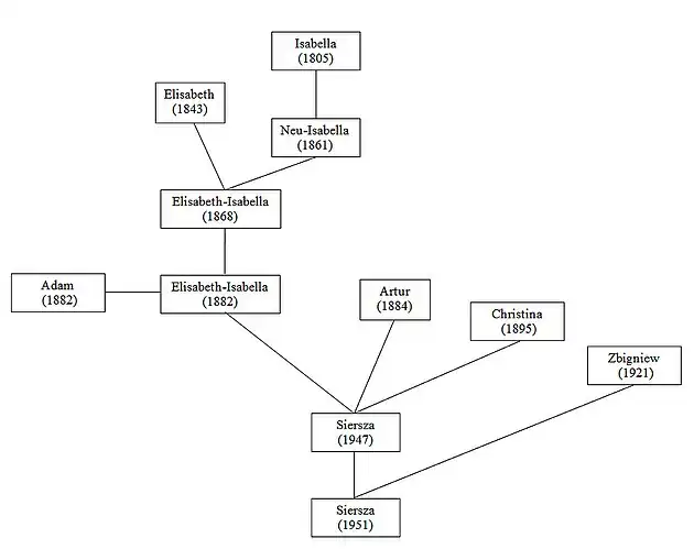 Schon 1808 hatten dieselben Eigentümer wie bei Elisabeth in Siersza die Zeche Isabella (poln. Schreibweise Izabela) gegründet, die ihren Namen von Prinzessin Izabela Lubomirska erhalten hatte. 1816 stillgelegt, wurde die Förderung zwischen 1823 und 1826 wiederaufgenommen. 1860 wurde die Zeche liquidiert und am gleichen Ort ein Jahr später ein neues Bergwerk mit dem Namen Nowa Izabela geschaffen. Dieses fusionierte 1868 mit der Zeche Elisabeth und 1882 mit der in diesem Jahr geschaffenen Tagebaugrube Adam.
