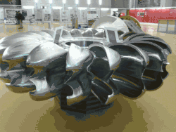 - drei Maschinensätze bestehend aus Turbine – Motorgenerator – Wandler – Pumpe (auf je einer Welle).