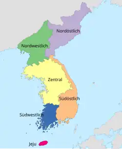 Koreanisch hat verschiedene Dialekte, die umgangssprachlich Satoori (사투리 saturi) genannt werden. Die Standardsprache des Nordens (문화어 munhwaŏ) beruht auf dem Dialekt um Pjöngjang, die des Südens (표준어 pyojuneo) auf dem Dialekt um Seoul. Die beiden sind jedoch sehr ähnlich, und auch sonst sind die Unterschiede zwischen den Dialekten recht gering; eine Ausnahme die Jeju-Sprache, der sich stark von den übrigen Varietäten unterscheidet und für Sprecher anderer Dialekte im Allgemeinen nicht verständlich ist.