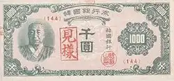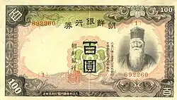 Den koreanischen Won ersetzten der Yen und die kleinere Währungseinheit Sen. Durch die Teilung Koreas in einen Nord- und Südteil spaltete sich das Zahlungssystem mit gleichbleibenden Nennwert in südkoreanische Won und nordkoreanische Won.[2]