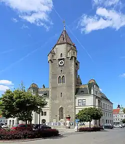 Symbol der Veränderung und städtebaulichen Weiterentwicklung im 19. Jahrhundert war der Abriss der mittelalterlichen Stadtmauer und der Tore. Ausdruck des bürgerlichen Selbstbewusstseins war das neue, den Hauptplatz dominierende Rathaus, errichtet im neugotischen Stil nach Plänen des Architekten Max Kropf (1894/95). Der mittelalterliche Stadtturm wurde in das Rathaus integriert; die ehemalige Nikolaikirche, die älteste Kirche der Stadt (profaniert 1786), wurde für den Neubau abgetragen.