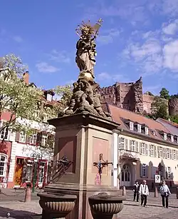 - ↑ a b Eva Hofmann: Der Muttergottesbrunnen auf dem Kornmarkt. In: Gertrud P. Fels u. a.: Heidelberger Altstadtbrunnen. Guderjahn, Heidelberg 1996, ISBN 3-924973-55-5, S. 83.