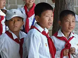 Das Korps der Jungen Pioniere (koreanisch 조선소년단, revid. Romanisierung Joseon Sonyeondan) ist ein Jugendverband in Nordkorea und wie fast alle Massenorganisationen des Landes der Partei der Arbeit Koreas (PdAK) unterstellt. Gegründet wurde der Verband am 6. Juni 1946. Die Mitgliedschaft ist ab einem Alter von 9 Jahren möglich und dauert bis zum 15. Lebensjahr an, anschließend wird man Mitglied des Sozialistischen Patriotischen Jugendverbands. Die Organisation ist hauptsächlich an Grund- und Mittelschulen aktiv.[1] Eine der wichtigsten Aufgaben ist die Indoktrination der Chuch’e-Ideologie, d. h. eine Erziehung im Sinne der Partei.