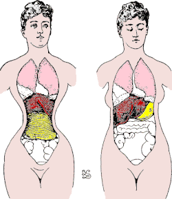 „Ihre Familie wollte wissen, was diesen plötzlichen Tod in so früher Jugend verursacht hatte, und man beschloß, eine Autopsie vorzunehmen. Der Befund war erschütternd: Die Leber von drei Rippen durchbohrt!!! So also stirbt man mit dreiundzwanzig Jahren! Nicht am Typhus, nicht im Kindbett, sondern am Korsett!“