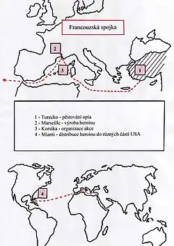 In der Nachkriegszeit etablierte sich auch ein blühender Drogenhandel mit Nordamerika. Korsische Banden transportierten Schlafmohn aus der Türkei nach Marseille, wo er zu Heroin verarbeitet wurde. Schließlich wurde die fertige Ware über den Hafen von Marseille nach Nordamerika geschmuggelt, wobei die Behörden ein Auge zudrückten. Von den 1960er bis zu den frühen 1970er Jahren wurden die wichtigsten korsischen Gruppen des organisierten Verbrechens von den amerikanischen Strafverfolgungsbehörden unter dem Namen Unione Corse zusammengefasst. In dieser Zeit organisierten sie die French Connection, eine massive Heroinhandelsoperation mit Sitz in Marseille, die an die amerikanische und italokanadische Mafia verkaufte.