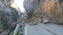 In der Nacht zum 13. März 2024 ging nahe des nördlichen Schluchteingangs ein massiver Felssturz nieder. Knappe 4 Wochen nachdem monatelange Sicherungsarbeiten beendet worden waren, die den westlichen Abhang der Schlucht mit Stahlnetzen sicher sollten, brach ein großes, keilförmiges Stück der Felswand los, riss die Sicherungsnetze mit sich und zerstörte die darunterliegende Straße samt ihres Unterbaus. Eine Expertenkommission soll berufen werden, um zu klären, ob und wie die Straße wieder sicher befahrbar gemacht werden kann und auch, ob eventuell die Sicherungsarbeiten selber den Felssturz ausgelöst haben könnten.