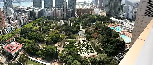 Der Kowloon Park in Tsim Sha Tsui, Kowloon, ist nicht zu verwechseln mit dem Kowloon Walled City Park (九龍寨城公園) b) auf dem historischen Gelände von Kowloon Walled City in Kowloon City, ebenfalls in Kowloon.