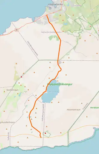 | Straßenbeginn: | Reykjanesbraut (64° 3′ 4″ N, 21° 59′ 38″ W) | |||||||||||||||||||||||||||||||||
