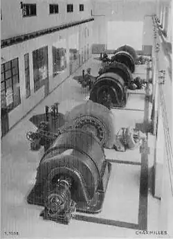 Im Jahre 1945 wurden die oben aufgeführten 18 Turbinen durch 3 doppelte Francis-Turbinen von Ateliers des Charmilles SA ersetzt. Jede der Turbinen hat eine Leistung von 7,36 MW, es können jedoch maximal 13 MW elektrische Leistung an das Netz abgegeben.[2] Das Kraftwerk wurde von 2009 bis 2013 abermals erneuert, wobei das Dach des Maschinenhauses mit einer Photovoltaikanlage ausgerüstet wurde, die jährlich 80 000 kWh in das Stromnetz einspeist.[3]