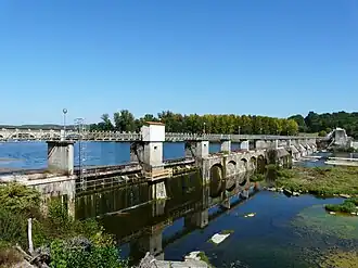 Ein erstes Stauwerk war bereits zwischen 1838 und 1843 errichtet worden, um den damals in Bau befindlichen Canal de Lalinde mit Wasser versorgen zu können. Der Canal de Lalinde erleichterte den Schiffsverkehr für die Gabarren auf der Dordogne, indem er die hinderlichen Stromschnellen umging.