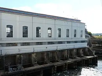 Gesamtkomplex aus Turbinenhaus und Stauwerk