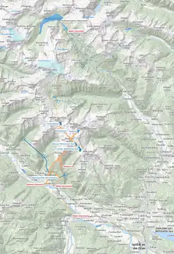 - ↑ Entfernung und Höhenunterschied gemessen auf Google Earth.