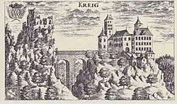 Die Kraiger Schlösser in einer Darstellung von Valvasor (um 1680)