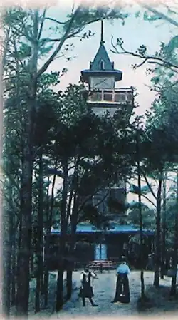 Auf dem Berg befindet sich ein 25 Meter hoher Aussichtsturm, der vom 1884 gegründeten Woltersdorfer Verschönerungsverein Kranichsberg e.V. betrieben wird. Er ersetzte einen ersten, 18 Meter hohen Turm des Vereins, der am 13. Mai 1886 als Kron-Prinz-Friedrich-Wilhelm-Turm erbaut wurde. Dieser wurde am 20. April 1945 von Angehörigen des Volkssturms angezündet und brannte vollständig ab. 1961 erfolgte unter der Leitung von Rudolf Post der Neubau eines Brandwach- und Aussichtsturms, der auf Grund seiner Nähe zu Berlin unter anderem auch vom Magistrat Groß-Berlins gefördert wurde. Die Beschaffung der für den Bau erforderlichen Materialien erforderte von den Beteiligten einiges Geschick, da das Holz von der sowjetischen Kommandantur für den Bau einer Richtfunkstation in Anspruch genommen werden sollte. In Verhandlungen gelang es, insgesamt 21 Kubikmeter Holz für den Bau des Turms zu erhalten.[2] Das Richtfest wurde am 7. Oktober 1961 gefeiert, die Einweihung erfolgte am 14. Juli 1962. 1976 übernahm das Ministerium für Staatssicherheit den Turm, welche die Öffentlichkeit fortan ausschloss und ihn als Funk- und Sendeanlage nutzte. Im unteren Teil des Turms wurde ein Bunker eingebaut. Mit der Gründung des Verschönerungsvereins am 22. Januar 1990 gelang es, die Grundlage für eine erneute öffentliche Nutzung zu legen. Vier Monate später erhielt der Verein einen Nutzungsvertrag von der Gemeinde. Nach einigen Um- und Ausbauten richtet er dort ein Turmmuseum ein. Es befasst sich unter dem Titel „Als Woltersdorf noch Hollywood war“ mit der Geschichte der Filmproduktion zur Stummfilmzeit in Woltersdorf und Umgebung.[3]