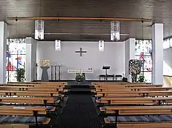 Im Laufe der folgenden Zeit erwies sich die Unterhaltung zweier Häuser als unzweckmäßig. Der Architekt Allerkamp aus Paderborn erhielt von der Stadt den Auftrag für die Erstellung eines Vorentwurfes für einen Erweiterungsbau. Dieser wurde von beiden Chefärzten und dem Sonderausschuss gebilligt. Die Bezirksregierung in Arnsberg und auch die Landesregierung waren gegen eine Erweiterung, stellten aber für einen Neubau Geldmittel in Aussicht.[5] Die beiden Krankenhäuser verschmolzen 1966, und unter kommunaler Trägerschaft begann der Neubau am Schönschede.[3] Zu diesem Zweck wurden insgesamt 56.000 Quadratmeter Grundstücke erworben, ein Nachtrag zum Flurbereinigungsverfahren regelte die Eigentumsübertragung. Der erste Spatenstich fand am 24. Juli 1962 statt. Da das Baugrundstück an einem Hang liegt, musste es geebnet und terrassiert werden. Allein für die Ausschachtung der Baugrube wurden 16.000 Kubikmeter Erde ausgehoben. Diese Erde wurde auf Halden in der Nähe gelagert und fand später für die Schaffung von ebenen Flächen Verwendung. Um das Grundstück herum wurde eine neue Straße angelegt und mit dem öffentlichen Netz verbunden. Richtfest wurde am 15. Mai 1964 gefeiert. Bis zum Herbst 1964 waren auch die beiden Schwesternwohnheime fertiggestellt. Die Innenausbauten wurden bis auf einige Mängel Ende 1965 abgeschlossen, das Krankenhaus wurde am 12. Januar 1966 eröffnet, war aber noch immer nicht komplett fertig. Die Vinzentinerinnen, die für die Pflege zuständig waren, berichteten an ihr Mutterhaus in Paderborn von zahlreichen Unzulänglichkeiten. Es hieß, die Arbeitsbedingungen seien denkbar schlecht. Es fehlte an notwendiger Einrichtung, und in der Verwaltung herrsche ein schlimmes Durcheinander. Die Stadt sagte für die nahe Zukunft weitere Ausstattung und notwendiges Personal zu.[6] Diese Schwierigkeiten wurden offensichtlich bald beigelegt, von weiteren Beschwerden seitens der Ordensschwestern liegen keine Nachrichten vor. Die Krankenhauskapelle wurde etwa 1966 eingerichtet. Im Auftrag des Erzbischofs von Paderborn spendete Propst Dünnebacke von der Propsteikirche Brilon die Weihe.[7] Bei der Eröffnung hatte das Krankenhaus 210 Betten. Das Krankenhaus erhielt 1977 eine Intensivstation; hierbei handelte es sich um die erste Intensivabteilung im Altkreis Brilon. Im Jahr 1988 erhielt das Haus einen Anbau, der als Bettentrakt Süd genutzt wurde; eine Installation einer Liegendkrankenanfahrt, eine neue Ambulanz und eine Cafeteria wurden 1989 installiert. Eine Gesamtsanierung des OP-Bereiches war 1993 notwendig. Kontinuierlich wurden bis heute weitere Um-, Anbau- und Sanierungsmaßnahmen vorgenommen.[3]