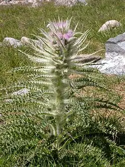 Cirsium ciliatum(Murray) Moench: Sie gedeiht mit drei Varietäten in den zentralen Rocky Mountains.[1]