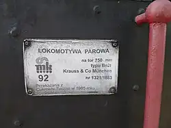 3. a b c d e Bogdan Pokropiński: Muzealne Parowozy wąskotorowe w polsce, Muzeum Ziemi Pałuckiej (dla Toru Szerokości 750 mm), Żniń 2007. ISBN 83-88795-08-2. Seite 82