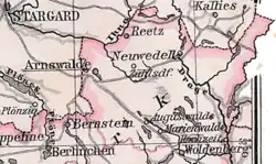 - Die Stadt Bernstein mitsamt ihrem Umland sowie die Orte Bärfelde, Krining, Niepölzig, Ruwen, Siede und Tobelhof wurden an den Kreis Soldin abgegeben.