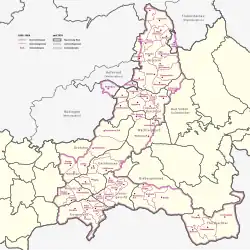 - ↑ Gesetz, die Bildung neuer Verwaltungsbezirke und die Einführung von Bezirksräten betreffend vom 31. Oktober 1848 und der entsprechende Verordnung vom 22. Dezember 1848, Sammlung von Gesetzen, Verordnungen, Ausschreiben und anderen allgemeinen Verfügungen für Kurhessen (kurhessGS) 1848 S. 237 ff. und 277 ff.