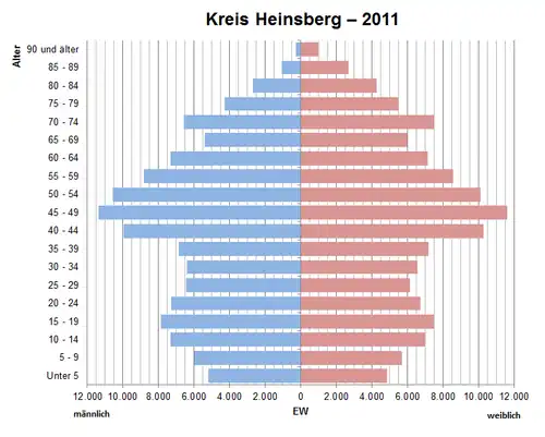 Bevölkerungspyramide für den Kreis Heinsberg (Datenquelle: Zensus 2011[5].)