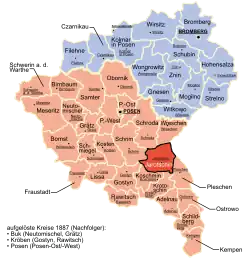 - ↑ a b c Gemeindeverzeichnis Deutschland 1900 – Königreich Preußen – Provinz Posen – Regierungsbezirk Posen. In: gemeindeverzeichnis.de. Abgerufen am 19. März 2020.