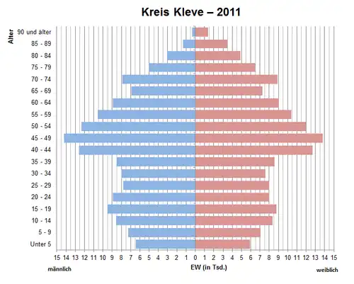 - ↑ Datenbank Zensus 2011, Kreis Kleve, Alter + Geschlecht ( vom 22. September 2021 im Internet Archive)