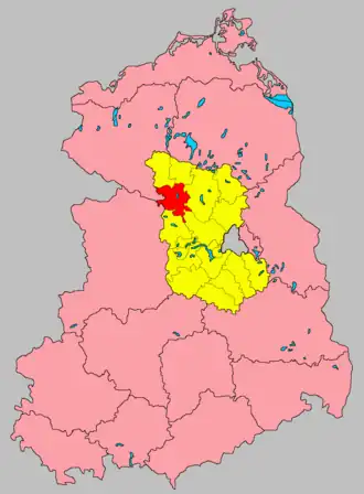 - ↑ Gesetz über die weitere Demokratisierung des Aufbaus und der Arbeitsweise der staatlichen Organe im Lande Brandenburg vom 25. Juli 1952 (Kreiseinteilung), Gesetz- und Verordnungsblatt des Landes Brandenburg 1952, S. 15