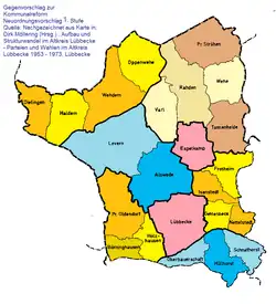 - ↑ Statistisches Bundesamt (Hrsg.): Historisches Gemeindeverzeichnis für die Bundesrepublik Deutschland. Namens-, Grenz- und Schlüsselnummernänderungen bei Gemeinden, Kreisen und Regierungsbezirken vom 27.5.1970 bis 31.12.1982. W. Kohlhammer, Stuttgart / Mainz 1983, ISBN 3-17-003263-1, S. 324 f. (Statistische Bibliothek des Bundes und der Länder [PDF; 41,1 MB]).